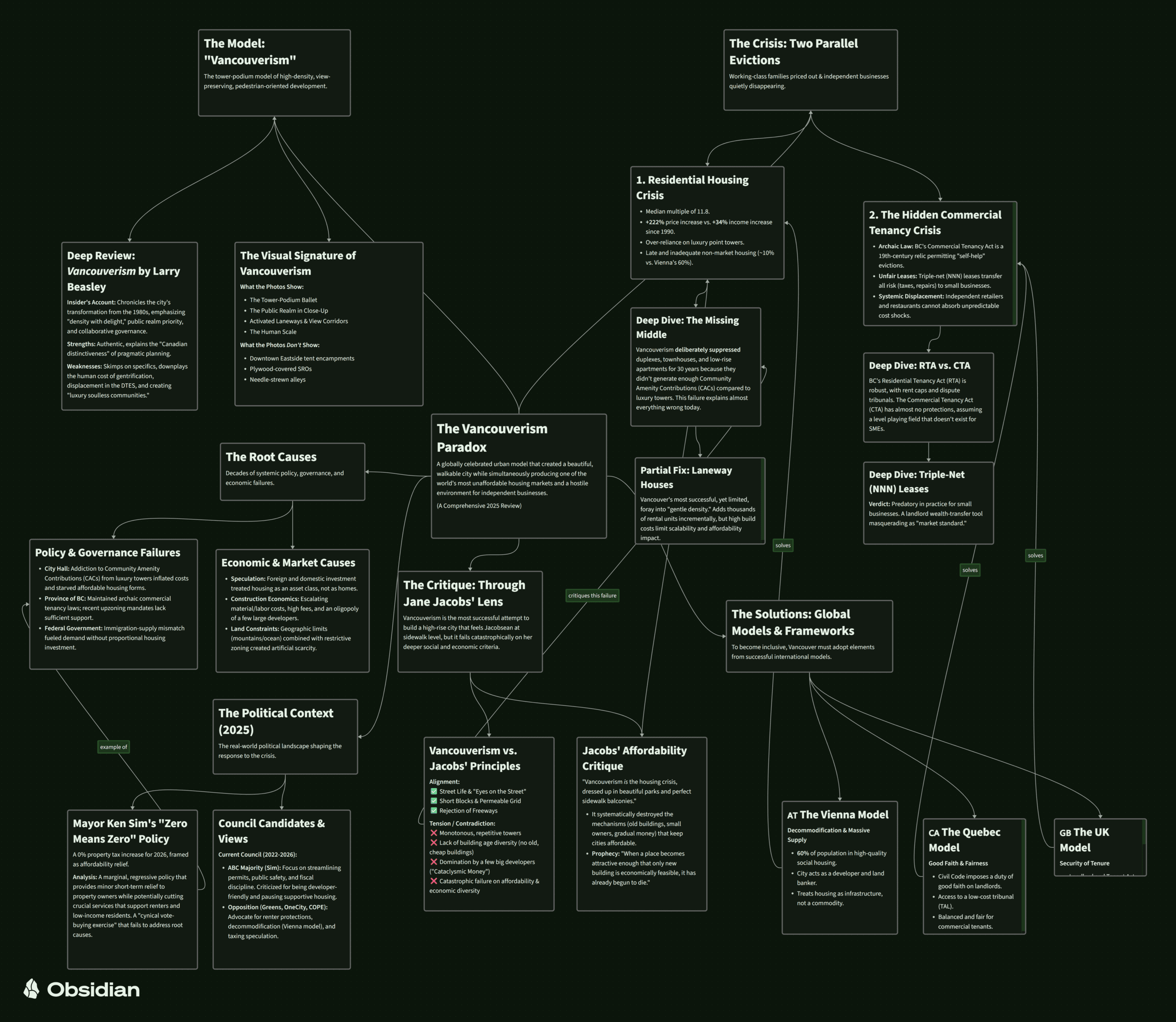 Until Vancouver confronts the failures of its zoning dogma and archaic commercial laws, "Vancouverism" will remain a model of exclusion: exquisite public spaces paid for by the displacement of everyone except the very wealthy.