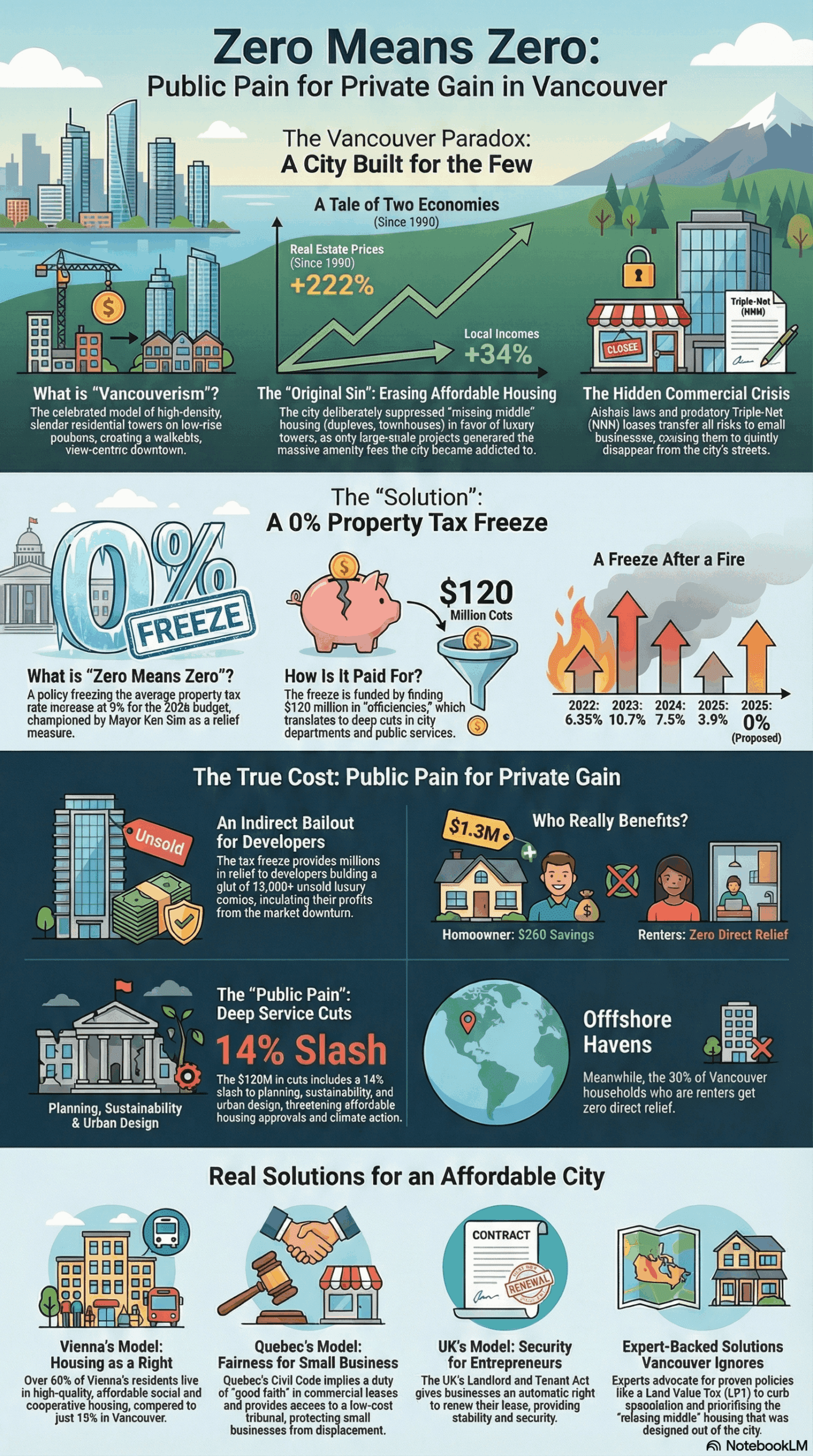 While headlines focus on housing, a silent eviction is destroying the city's soul. Independent businesses are disappearing, replaced by chains that can absorb the shocks of Vancouver's predatory commercial leasing environment.